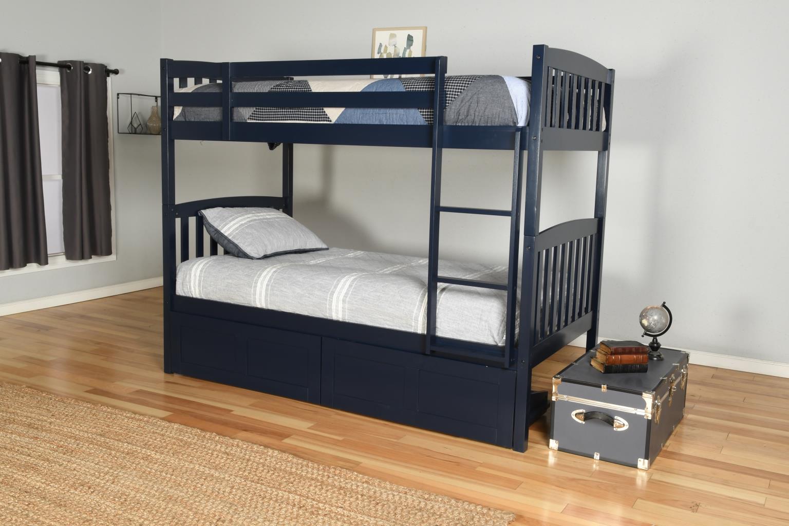 Claire Twin over Twin Bunk Bed with Storage Drawers in Navy