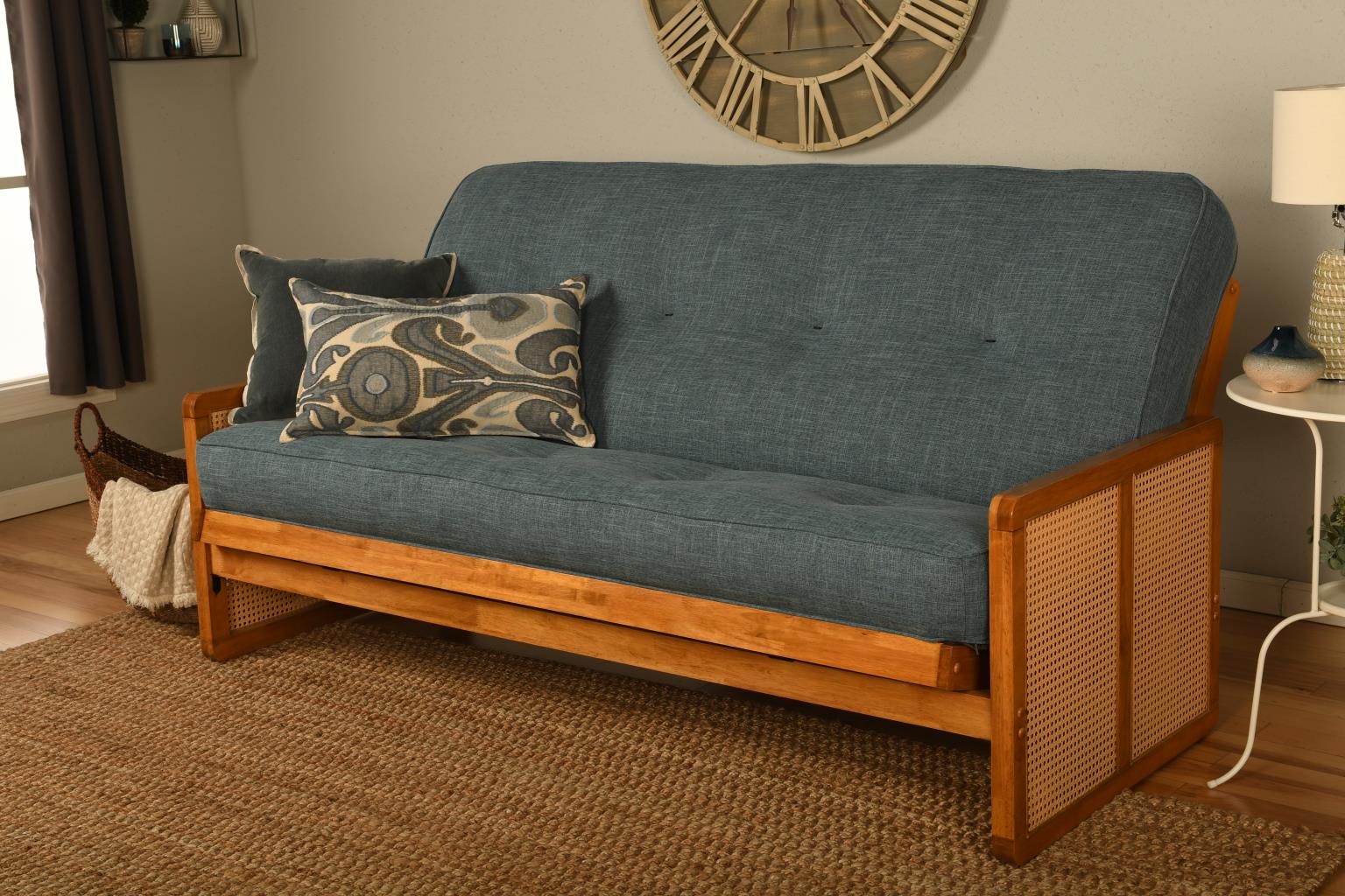 Westport Full-size Frame in Honey Finish includes #6000 Linen Aqua Mattress