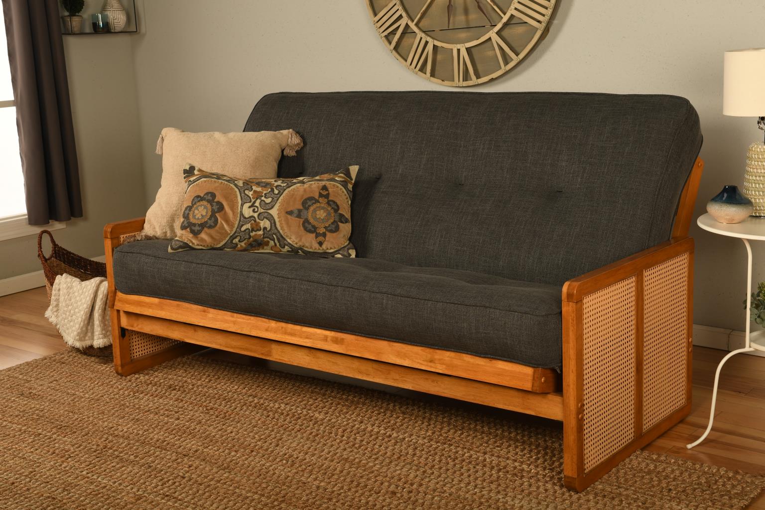 Westport Full-size Frame in Honey Finish includes #6000 Linen Charcoal Mattress